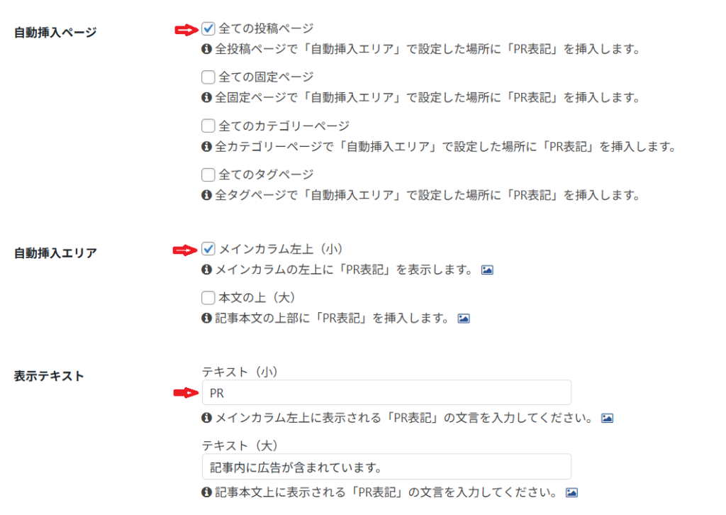 これで、「PR」や「記事内に広告が含まれています。」といった表示が出るようになります。