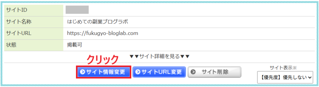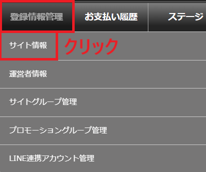 「登録者情報管理」 → 「サイト情報」 をクリックします。
