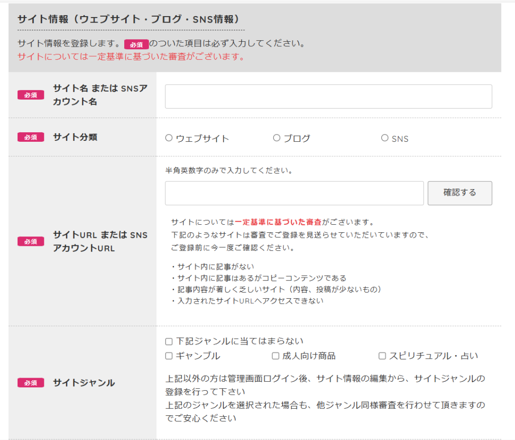 afbの本人認証完了後、次の流れでサイトジャンルの設定を行いましょう。