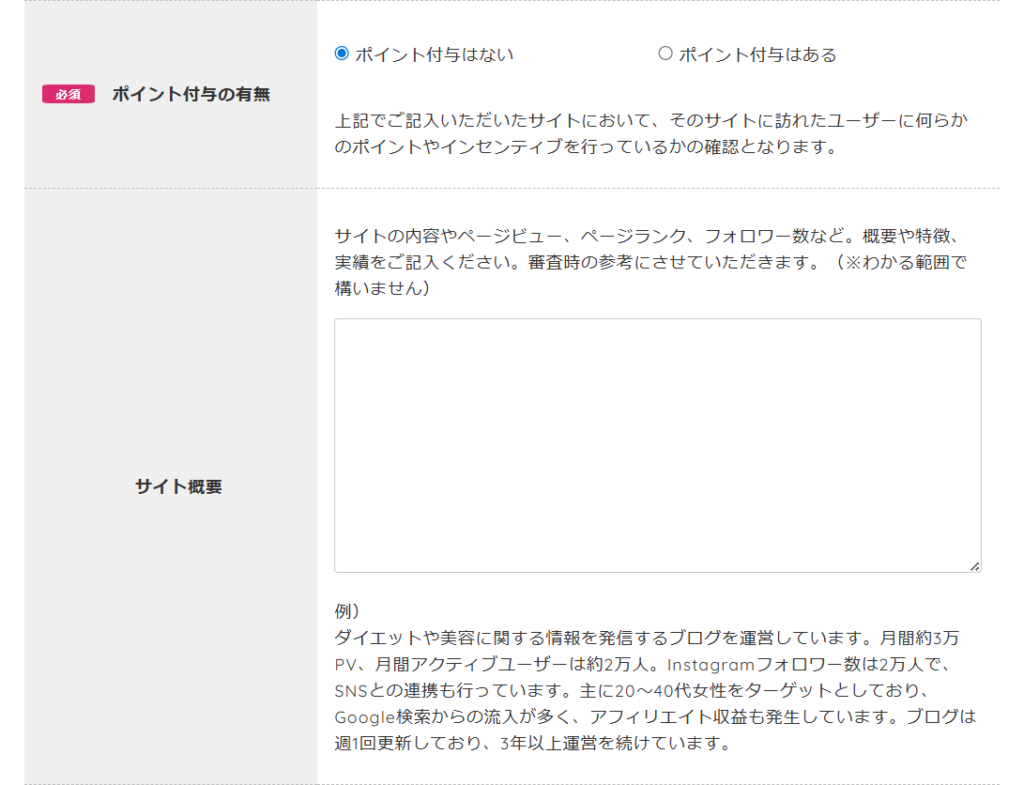 ※ユーザーに対してポイントやインセンティブを与えていないかの確認です。