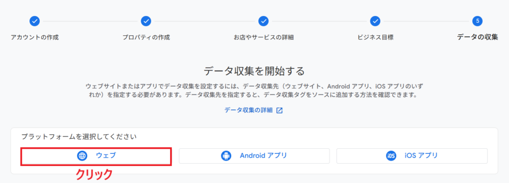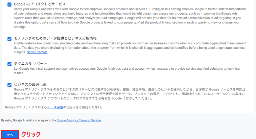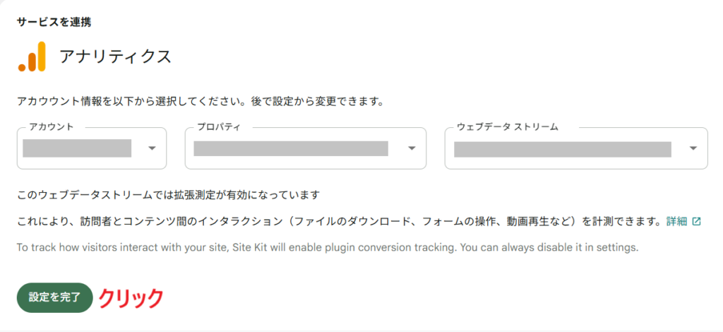 最後にアナリティクスの画面で「設定を完了」をクリックすればOKです。