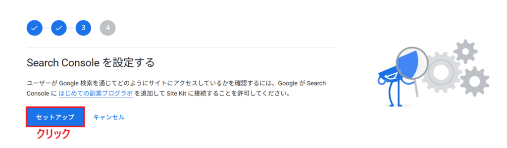 Site Kitのセットアップの中で、サーチコンソールの設定も同時にできます。