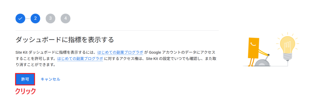 「ダッシュボードに指標を表示する」 → 許可をクリック