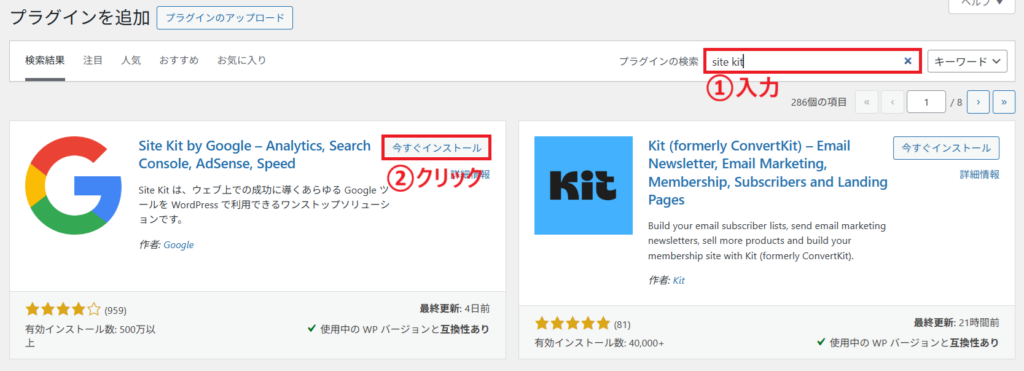 見る方法は、左側のメニューにあるSite Kitダッシュボードをクリック