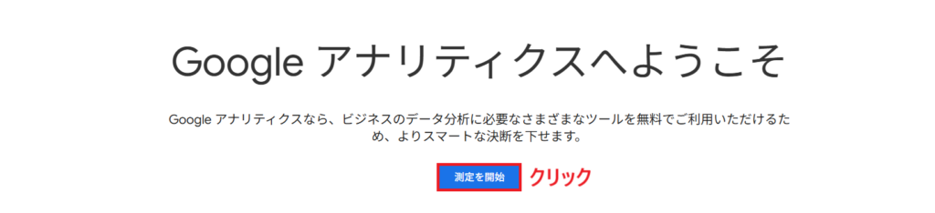アナリティクスのトップページが表示されたら、「測定を開始」をクリック