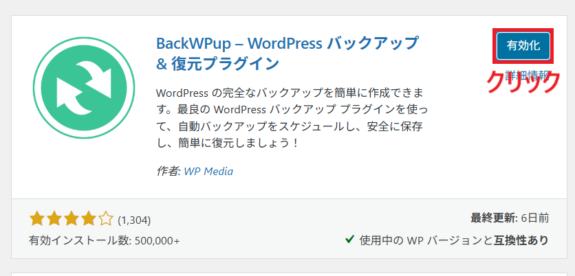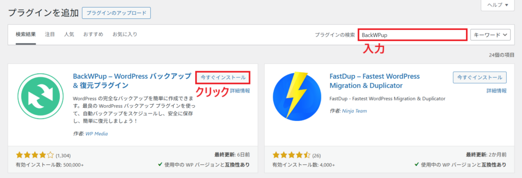 表示されたBackWPupの横にある 「今すぐインストール」 をクリック