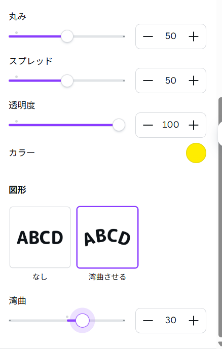 スライダーで湾曲の角度を調整