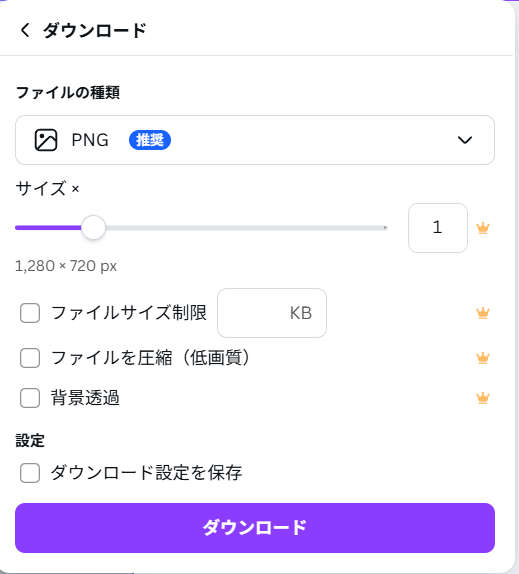 好みの形式(PNGがおすすめ)を選んで 「ダウンロード」