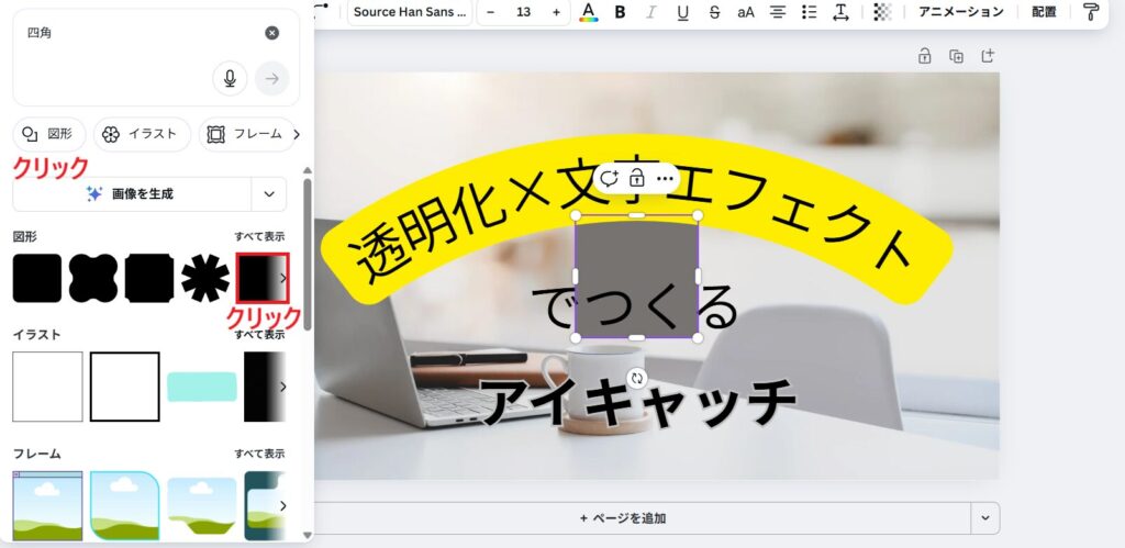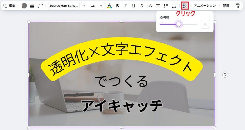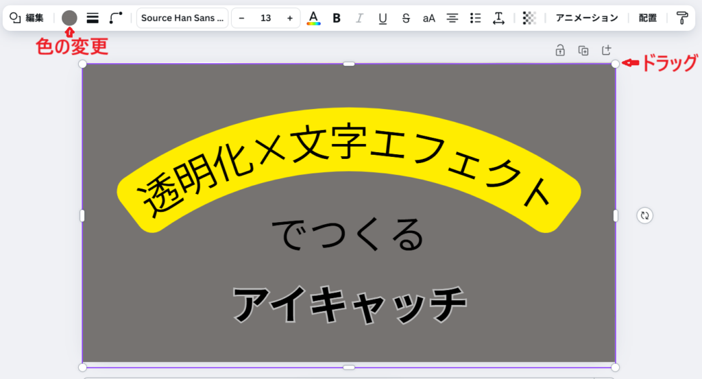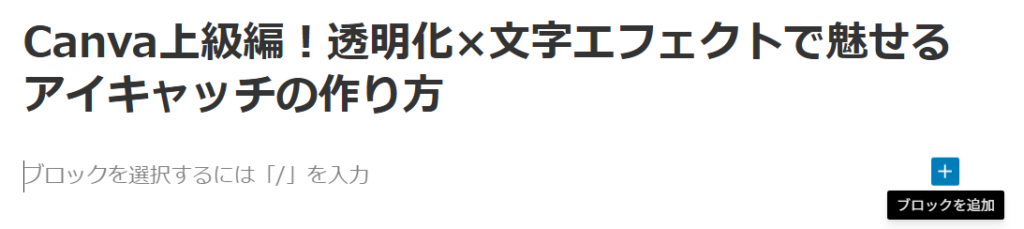 Canvaに慣れてきて、「そろそろワンランク上のアイキャッチを作りたい!」という方におすすめなのが、透明化×文字エフェクトを組み合わせたデザインです。