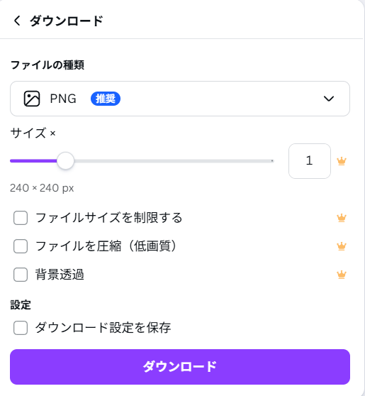 PNG形式を選んで、ダウンロードをクリック