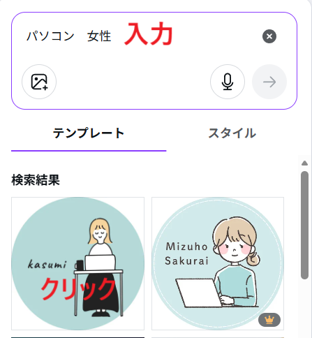 次に、左上の検索窓に使いたいイメージを入力します。