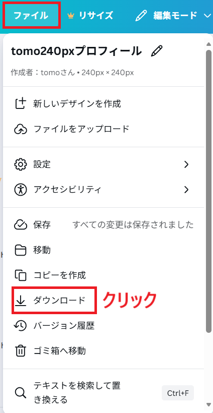 その後、画面左上の「ファイル」→「ダウンロード」 をクリックし、画像を保存します。