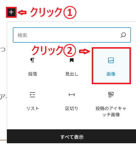 まず、タイトルの最後の文字にカーソルを合わせ、Enterを押します。すると、+が出てくるので+をクリック。画像を選択します。