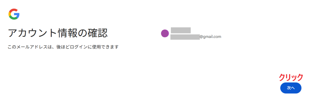 作成した Gmail アドレスを入力 → 「続行」をクリック