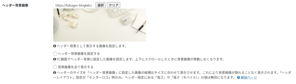 Cocoon設定の「ヘッダー」で背景画像を反映