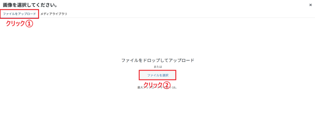 「ファイルをアップロード」→「ファイルを選択」をクリック
