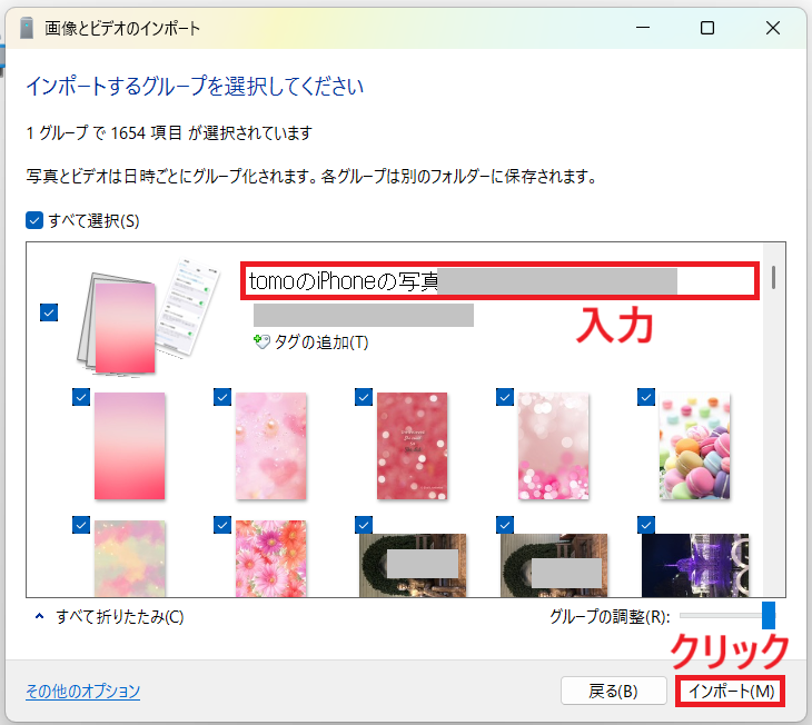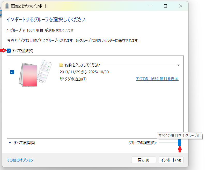 ➡ ここでは「インポートする項目を確認、整理、グループ化する」 を選択します