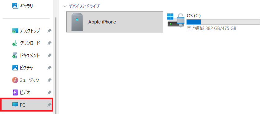 しばらくすると、エクスプローラーに 「Apple iPhone」 が表示されます