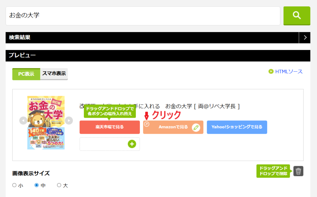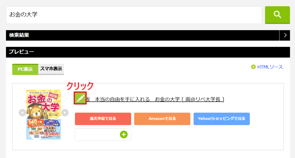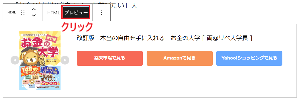 プレビューに商品リンクが表示されます。