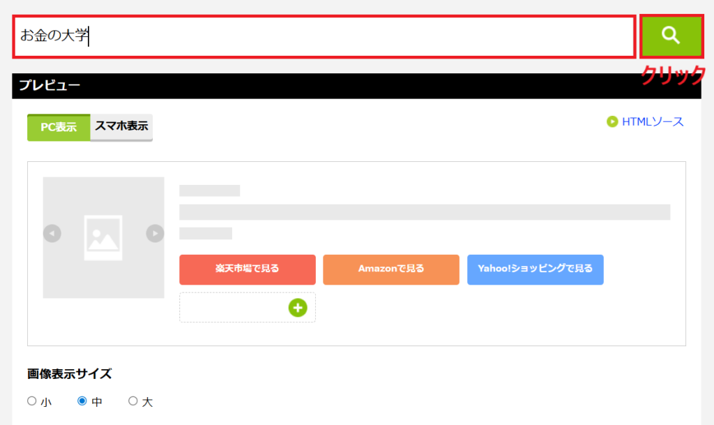 それで良さそうなら、表示された検索結果から、載せたい商品の 画像部分をクリック。