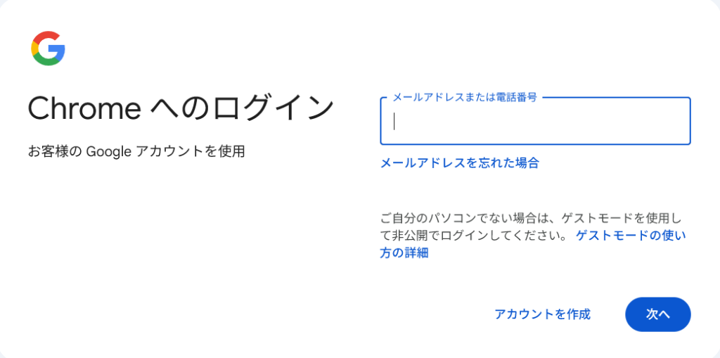 Chromeにログインから「ログイン」をクリック