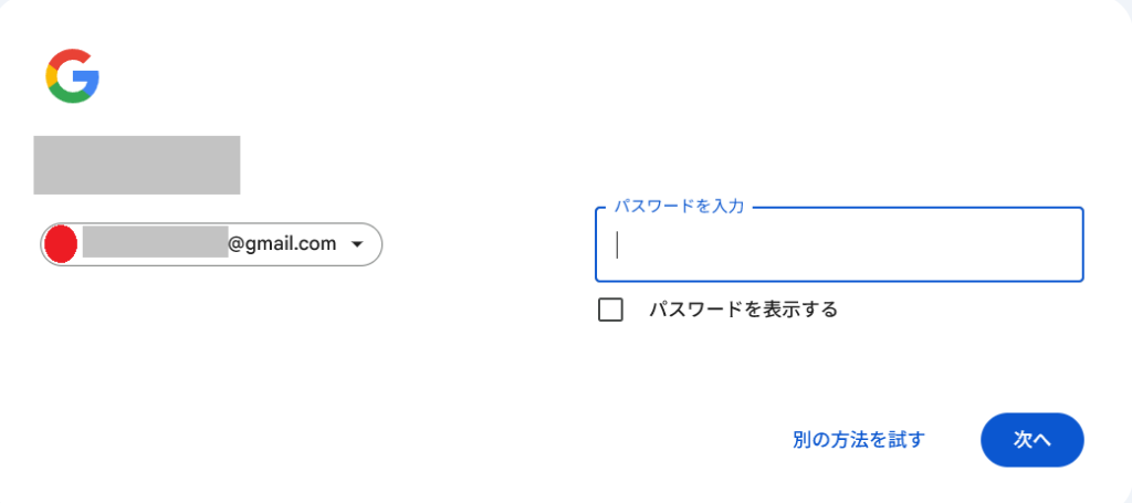続けてパスワードを入力して → 次へ