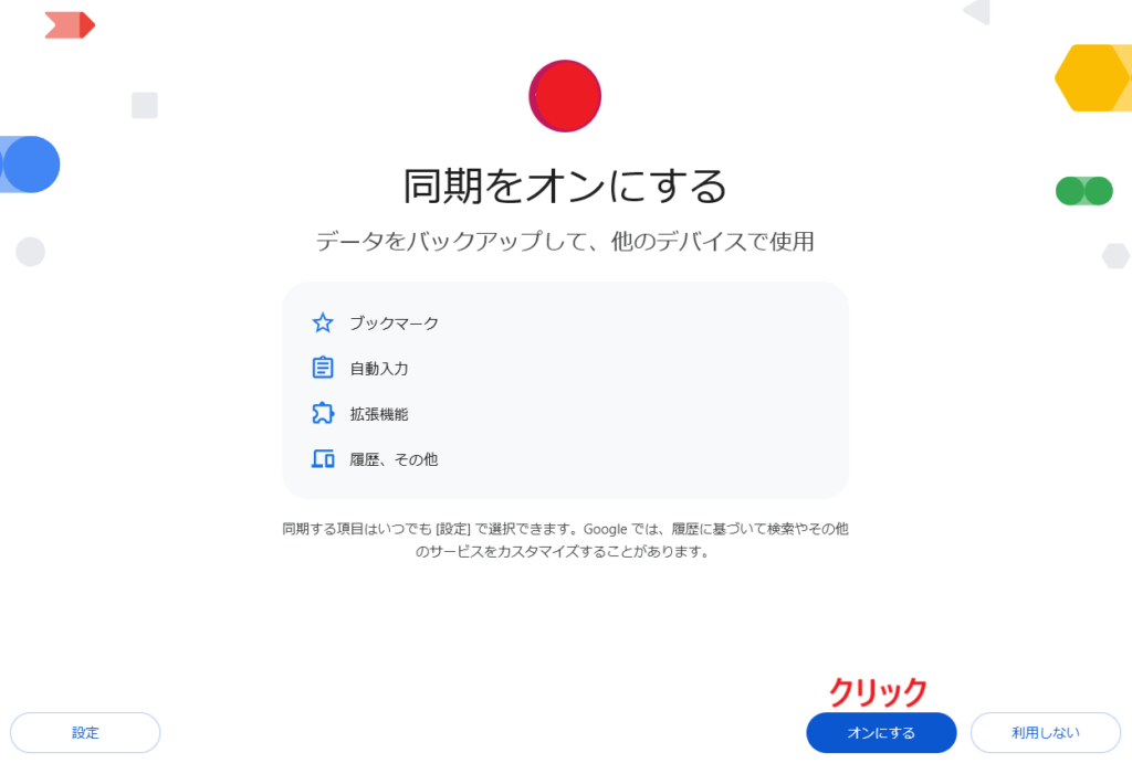 「同期をオンにする」をクリック(推奨)